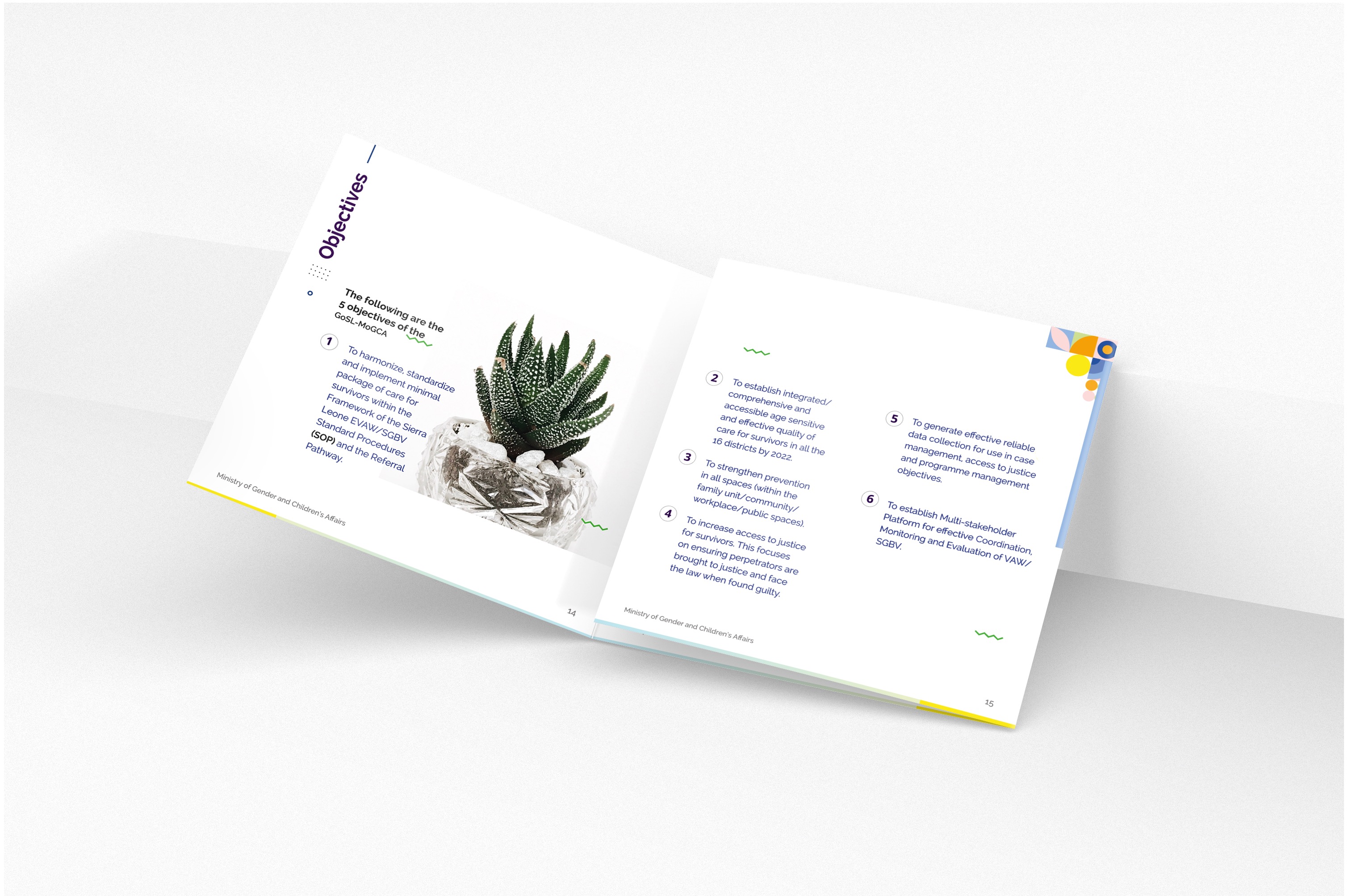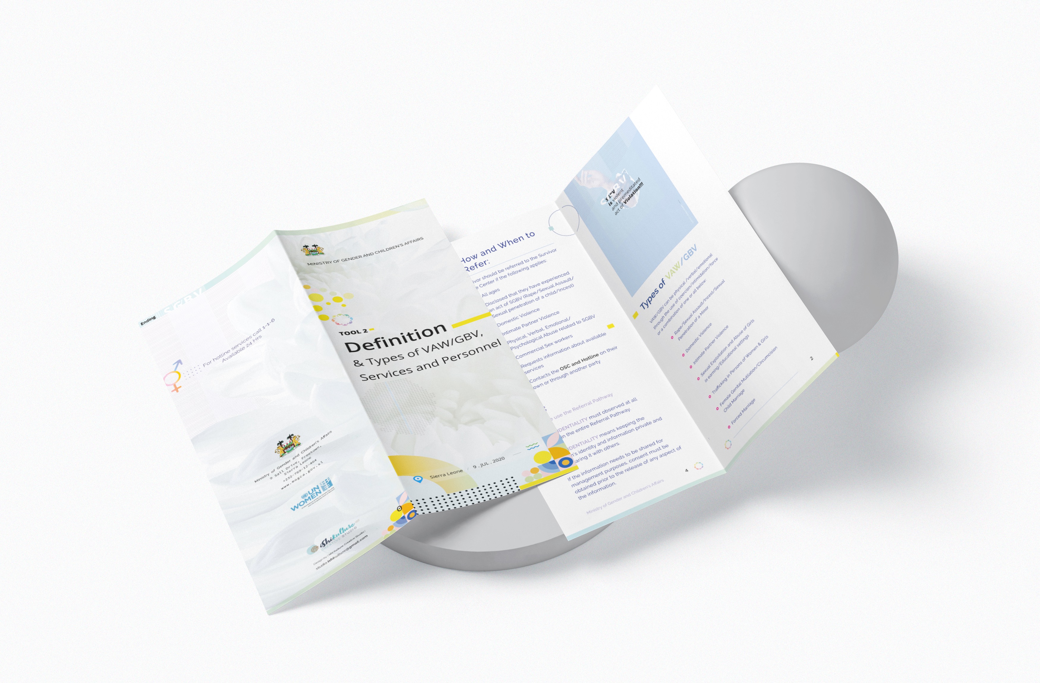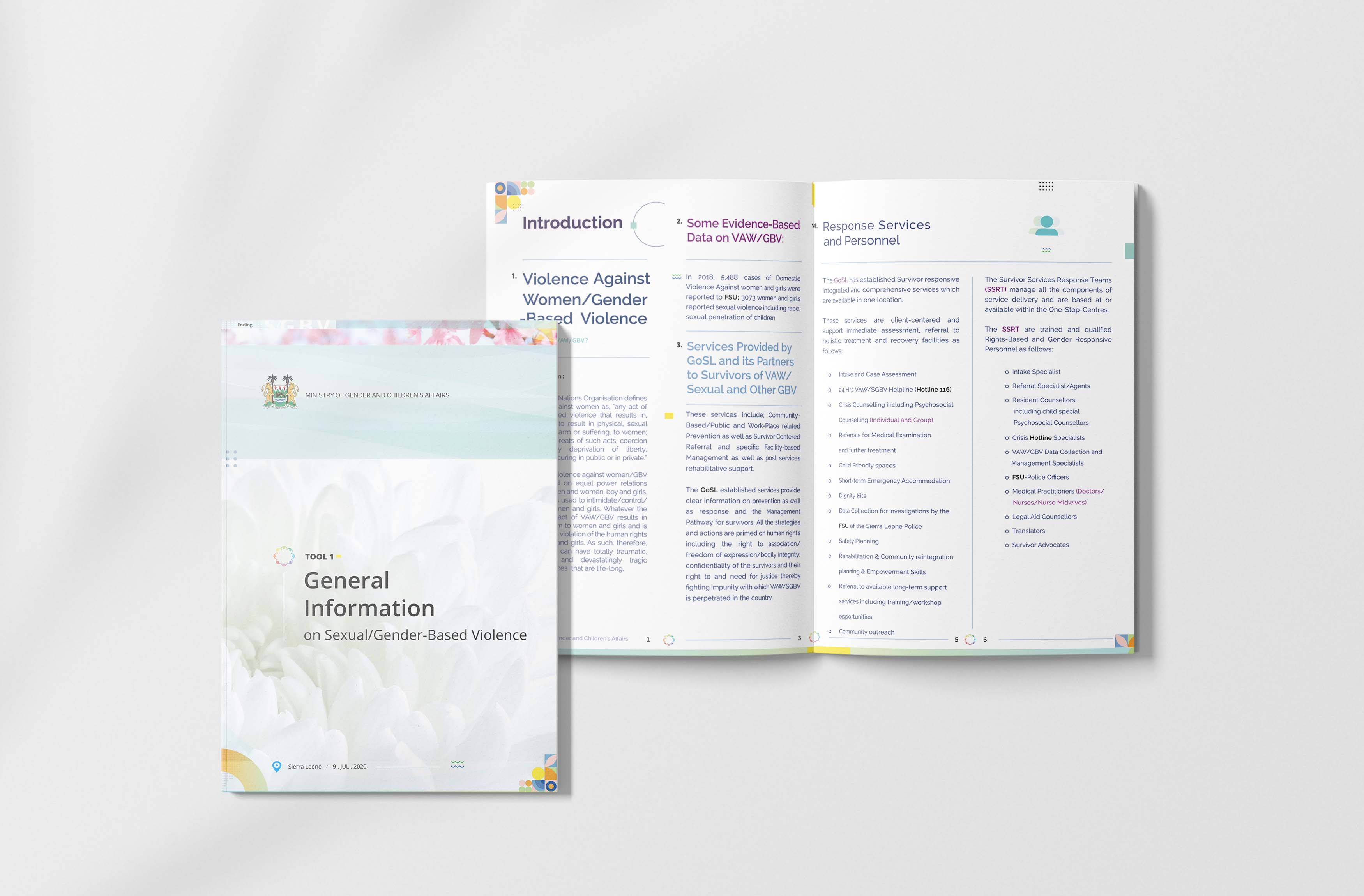Developing the editorial design and layout of the brochures and booklets that formed the S/GBV Response and Management Toolkit for use each OSC located across 7 of the 14 districts with the most prevalent S/GBV rates.